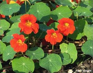 Описание. Многолетнее растение, в условиях Средней полосы России выращивается как летник. Широкое распространение получила настурция большая, реже встречается настурция иноземная. Светолюбивое растение, но может расти и при небольшом затенении, почвы умеренно плодородные. Растение влаголюбиво, но при этом довольно засухоустойчиво. Стебли у настурции стелющиеся, сильноветвистые, длиной до 3 метров. Листья крупные, формы неровного круга и шириной до 8 см, светло-зеленые. Цветки самой разнообразной окраски – красные, оранжевые, желтые, розовые до 5 см в диаметре. Разнообразие оттенков вносят пятна и штрихи разнообразной окраски. Зацветает спустя примерно 2 месяца после посева семян и цветет с июня до первых за-
